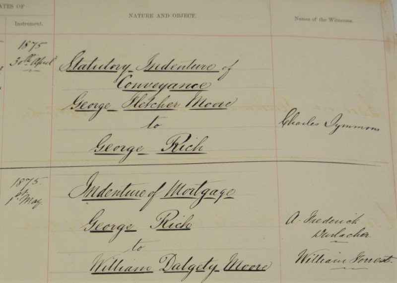 Wellington Location 27 remained in the Moore family until 11 May 1874 when an agreement of lease with the prospect of sale was entered into by George Fletcher Moore and his nephew William Dalgety Moore [8] with George Rich of Bunbury.[9]